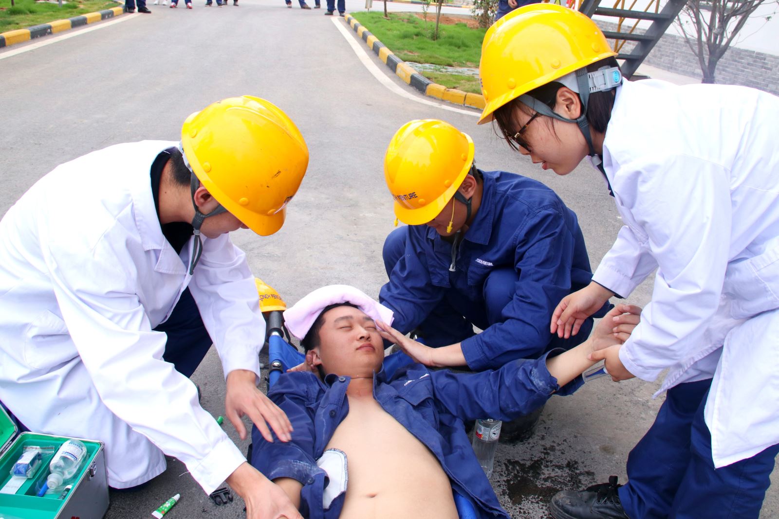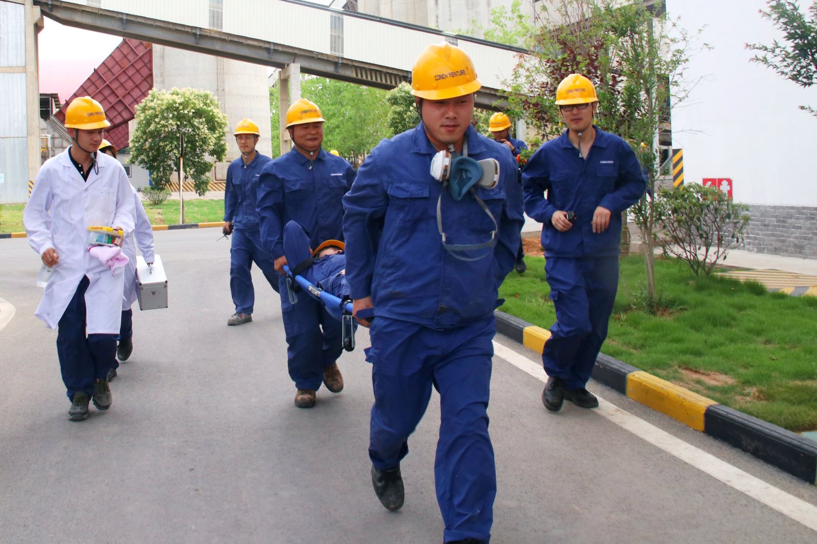 ? ? 6月24日下午,公司組織開展了高溫中暑應(yīng)急演練。15:00,總指揮接到報(bào)告,卸料大廳有人昏倒在地,應(yīng)急救援小組立即啟動預(yù)案,根據(jù)患者情況,迅速作出判斷,轉(zhuǎn)移至安全地帶進(jìn)行救治。