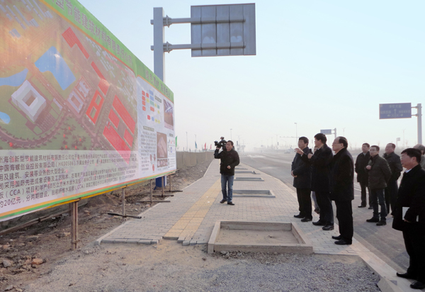? ? 2014年元月15日上午,安徽省副省長方春明率省政府辦公廳副主任劉衛(wèi)東一行在亳州市市長沈強、亳州蕪湖現(xiàn)代產(chǎn)業(yè)園區(qū)管委會有關(guān)領(lǐng)導(dǎo)的陪同下,視察了亳州海創(chuàng)新型節(jié)能建筑材料公司CCA項目施工現(xiàn)場。中國海螺創(chuàng)業(yè)控股有限公司副總經(jīng)理李劍、亳州海創(chuàng)新型節(jié)能建筑材料公司副總經(jīng)理章嗣福等熱情接待了方副省長一行。