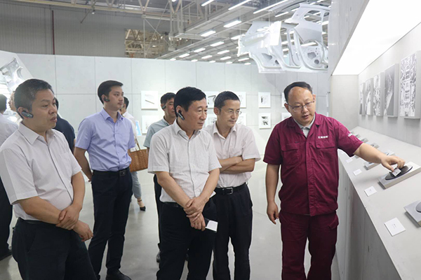 郭景彬董事長(zhǎng)受邀先后參觀了江淮汽車蔚來(lái)工廠、新能源汽車總裝車間,體驗(yàn)了新能源汽車和智能制造技術(shù)運(yùn)用,了解到了現(xiàn)代汽車生產(chǎn)的工藝流程、裝備技術(shù)、智能制造和環(huán)??刂啤?jù)介紹,該蔚來(lái)基地規(guī)劃年產(chǎn)能10萬(wàn)輛,車身車間可通過(guò)307臺(tái)機(jī)器人實(shí)現(xiàn)車身主要連接100%自動(dòng)化,車間整體自動(dòng)化率97.5%,是目前國(guó)內(nèi)最新的全鋁車身生產(chǎn)線,蔚來(lái)的兩款量產(chǎn)車型ES8和ES6均在這里生產(chǎn)制造。