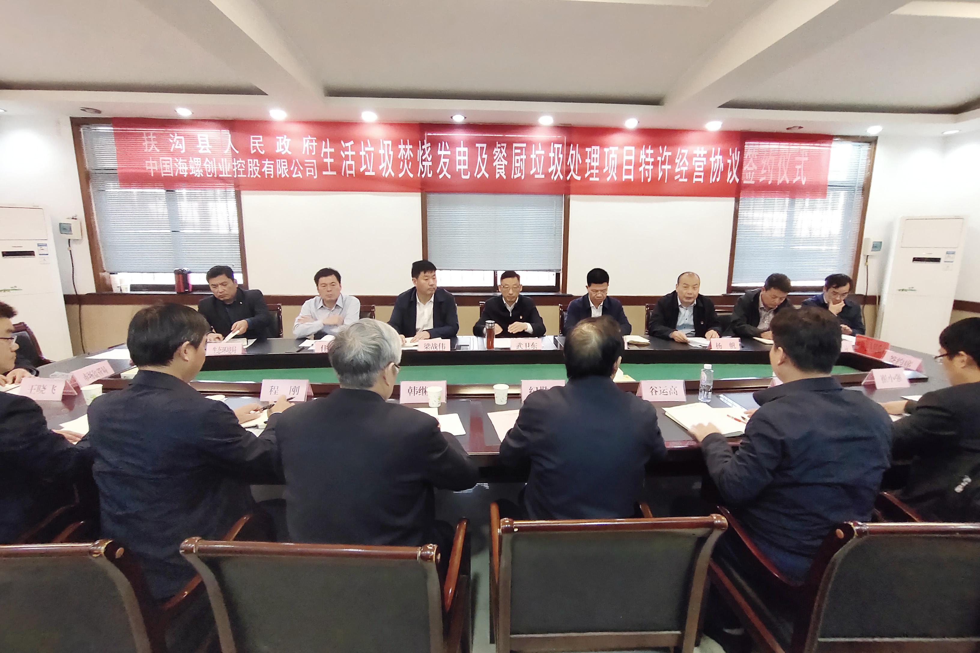 簽約儀式在扶溝縣政府會(huì)議室舉行,由扶溝縣政府辦主任楊帆主持。海螺創(chuàng)業(yè)總經(jīng)理紀(jì)勤應(yīng)和扶溝縣委常委統(tǒng)戰(zhàn)部部長(zhǎng)任松奎分別代表雙方簽約。
