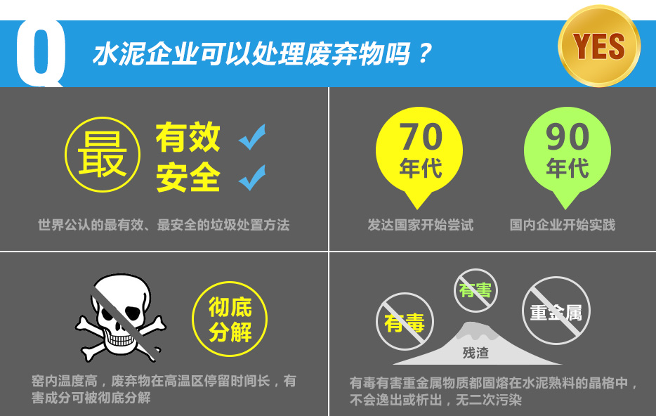 ? ?[核心提示]水泥窯協(xié)同處置廢棄物是世界公認的最有效、最安全的垃圾處置方法。上世紀70年代,發(fā)達國家開始嘗試; 90年代國內(nèi)企業(yè)開始實踐。在水泥生產(chǎn)過程中,利用窯內(nèi)高溫,廢棄物在高溫區(qū)停留時間長,有害成分可被徹底分解,同時,殘渣中的硫、氯或重金屬等有害物質(zhì)可固熔在熟料的晶格中,無二次污染。