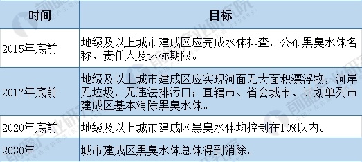 ? ? 而《水污染防治行動計劃》明確提出,黑臭水體治理目標要求:到2020年,地級及以上城市建成區(qū)黑臭水體均控制在10%以內(nèi);到2030年,城市建成區(qū)黑臭水體總體得到消除。