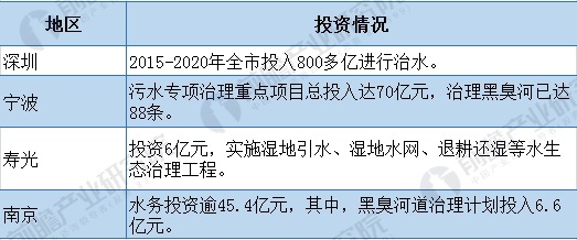圖表5:部分地區(qū)黑臭河治理投資情況(單位:億元)
