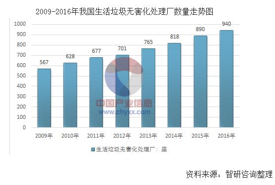 ? ? 2016年年末全國(guó)城市共有生活垃圾無(wú)害化處理場(chǎng)(廠)940座,比上年增加50座,日處理能力62.1萬(wàn)噸,處理量1.97億噸,城市生活垃圾無(wú)害化處理率96.62%,比上年增加2.52個(gè)百分點(diǎn)。