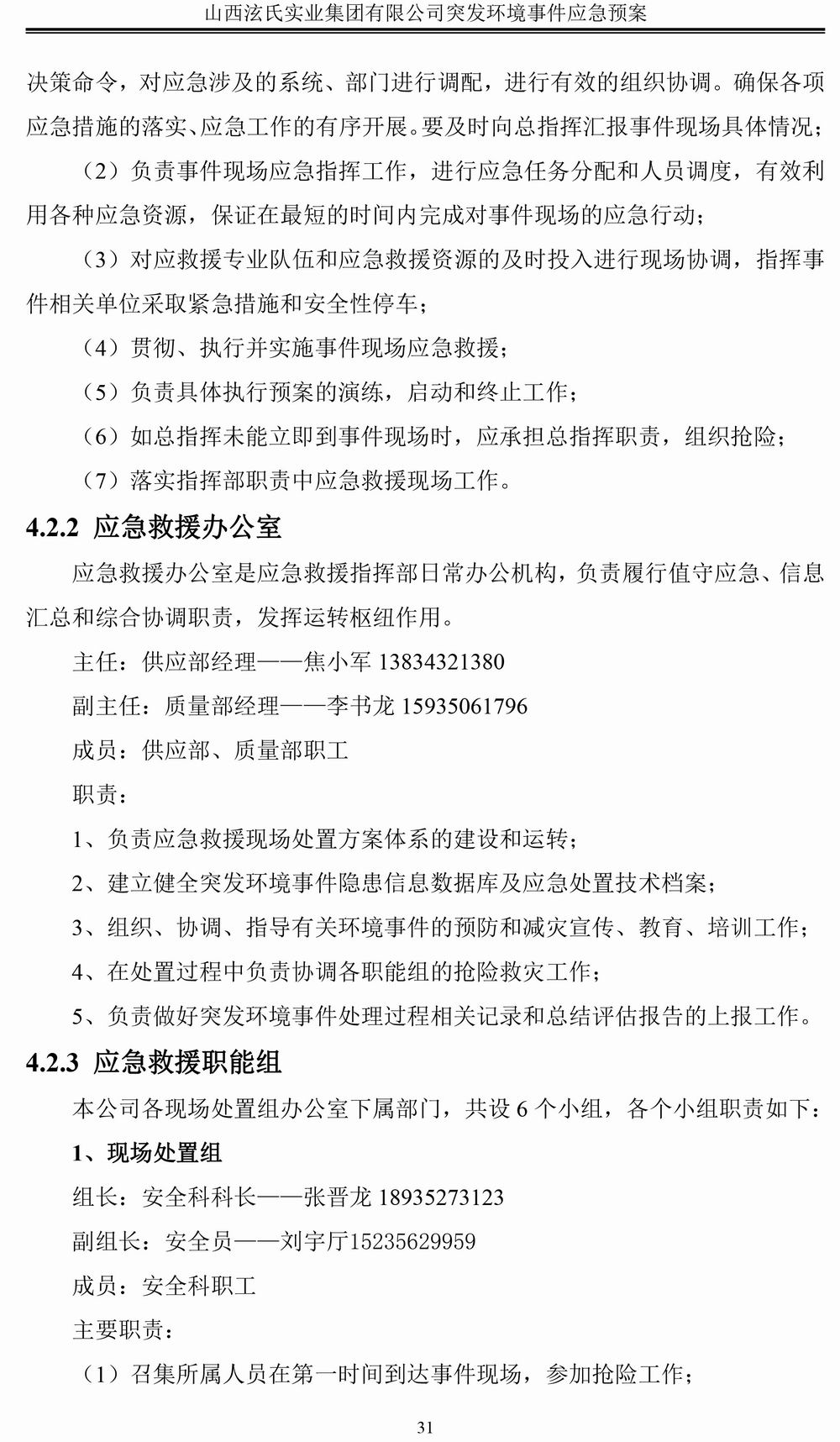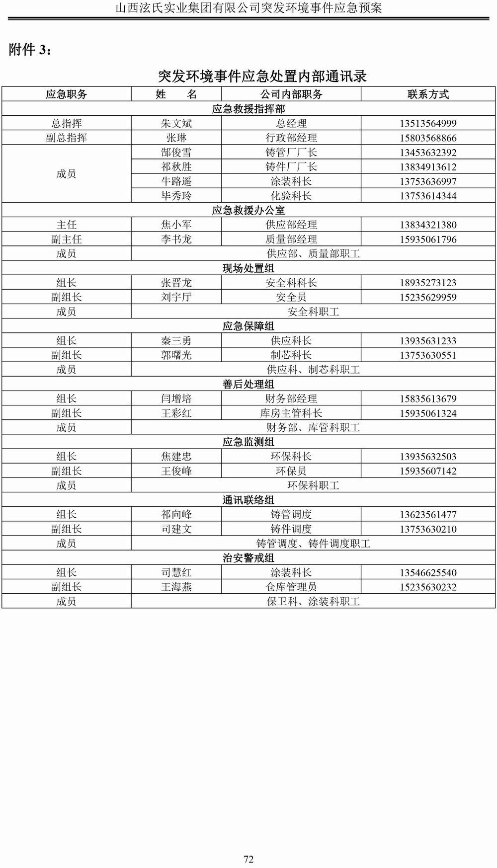 泫氏实业应急预案